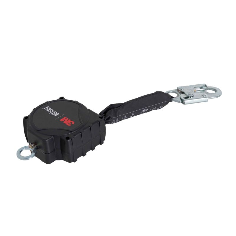 O equipamento é equipado com conectores de aço, como um mosquetão automático e um gancho automático, que garantem uma fixação segura durante o uso. Além disso, possui componentes de alta qualidade, como prendedores de aço zincado, absorvedor de energia com proteção em tubulação de PVC e tecido de poliéster, articulação de aço zincado, mola do motor de aço carbono, tambor de nylon preenchido por fibras de vidro, eixo principal de aço inoxidável e linguetas de travamento em aço inoxidável.